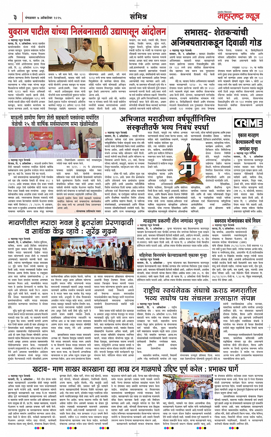 दैनिक महाराष्ट्र न्यूज-07/10/2025 Page: 3 October 07, 2025 << First << 3 >> Last >> Page 1Page 2Page 3Page 4 × दैनिक महाराष्ट्र न्यूज-07/10/2025 << First << 3 >> Last >> page 1page 2page 3page 4