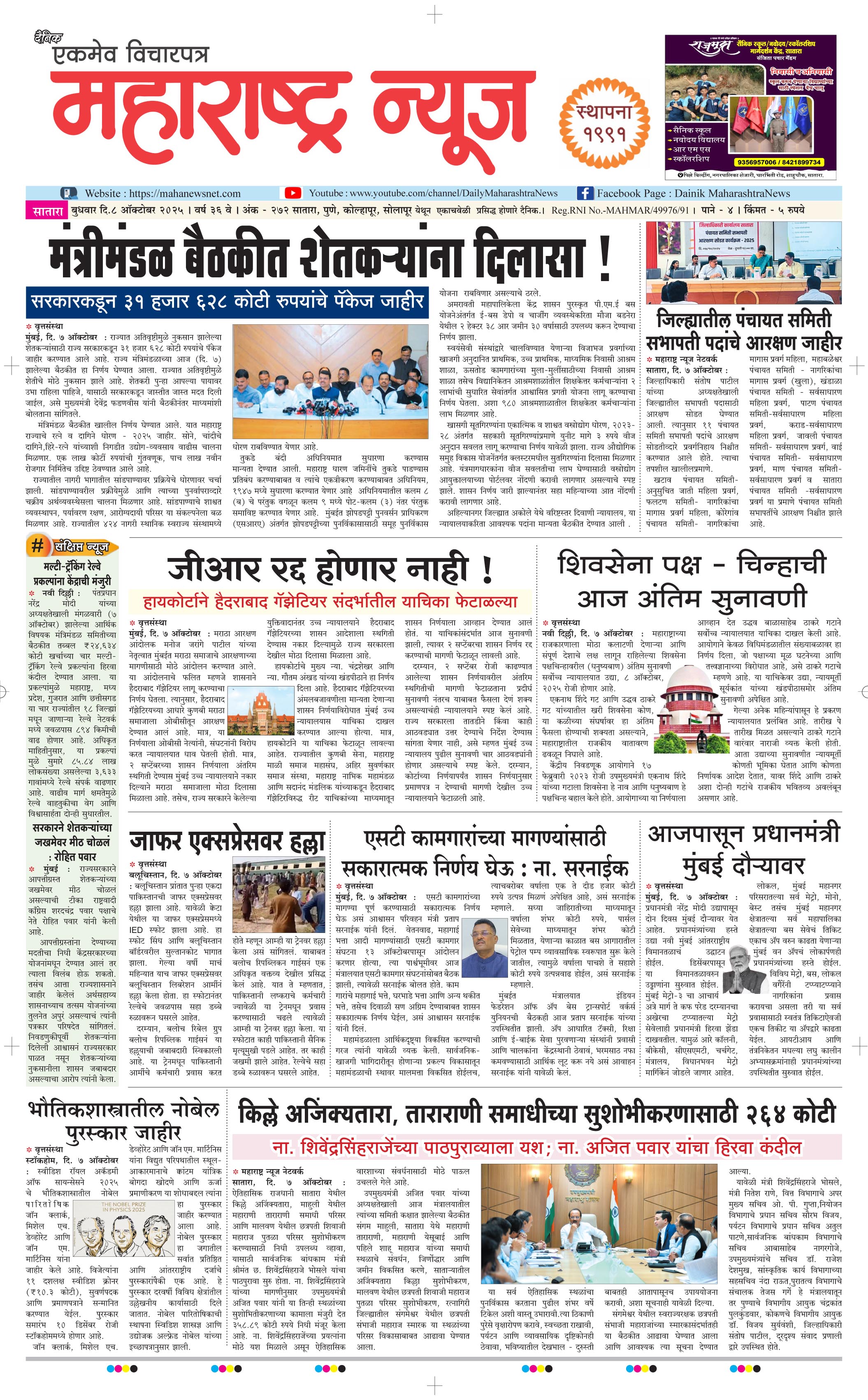 दैनिक महाराष्ट्र न्यूज-08/10/2025