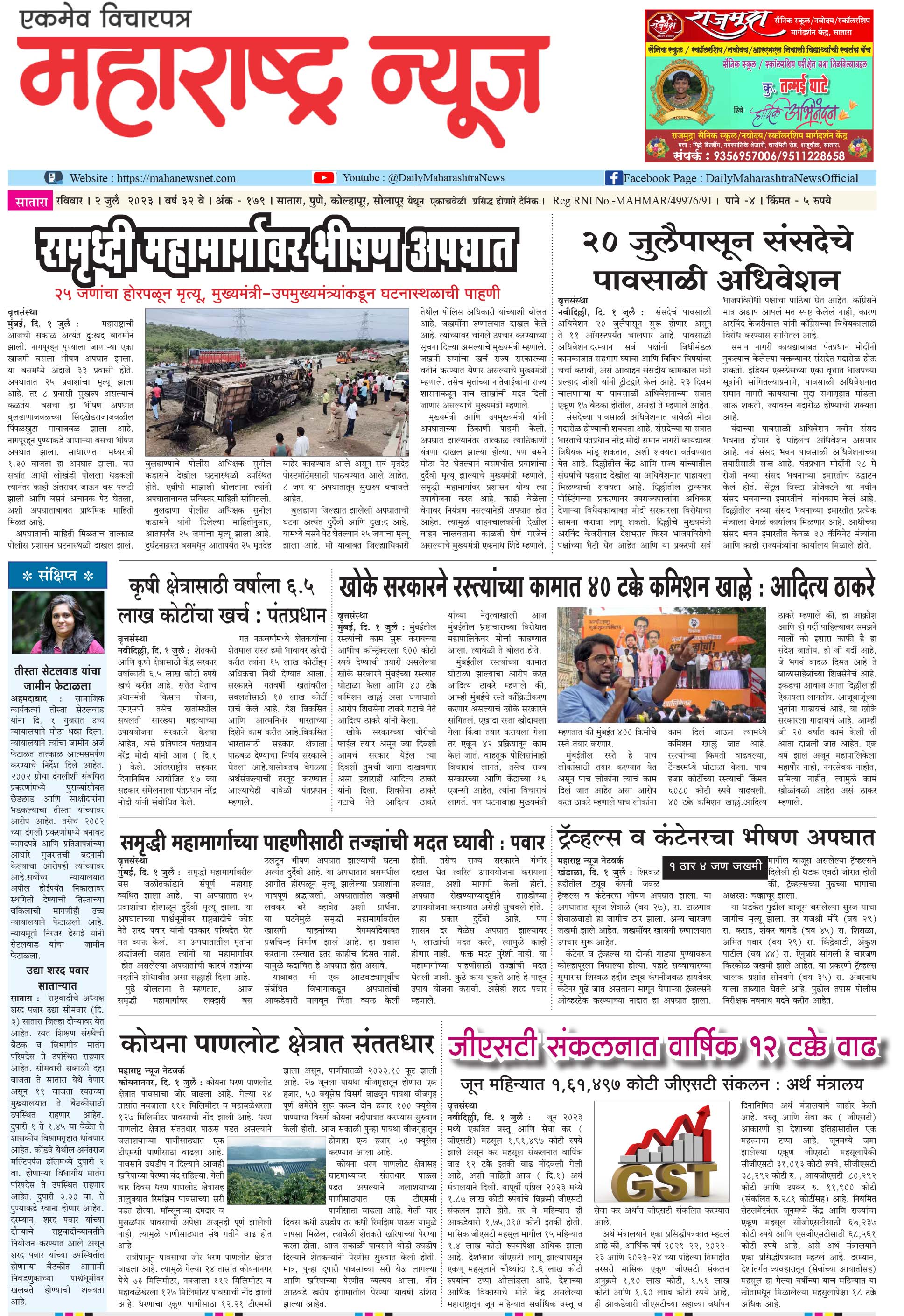 दैनिक महाराष्ट्र न्यूज-2/07/2023