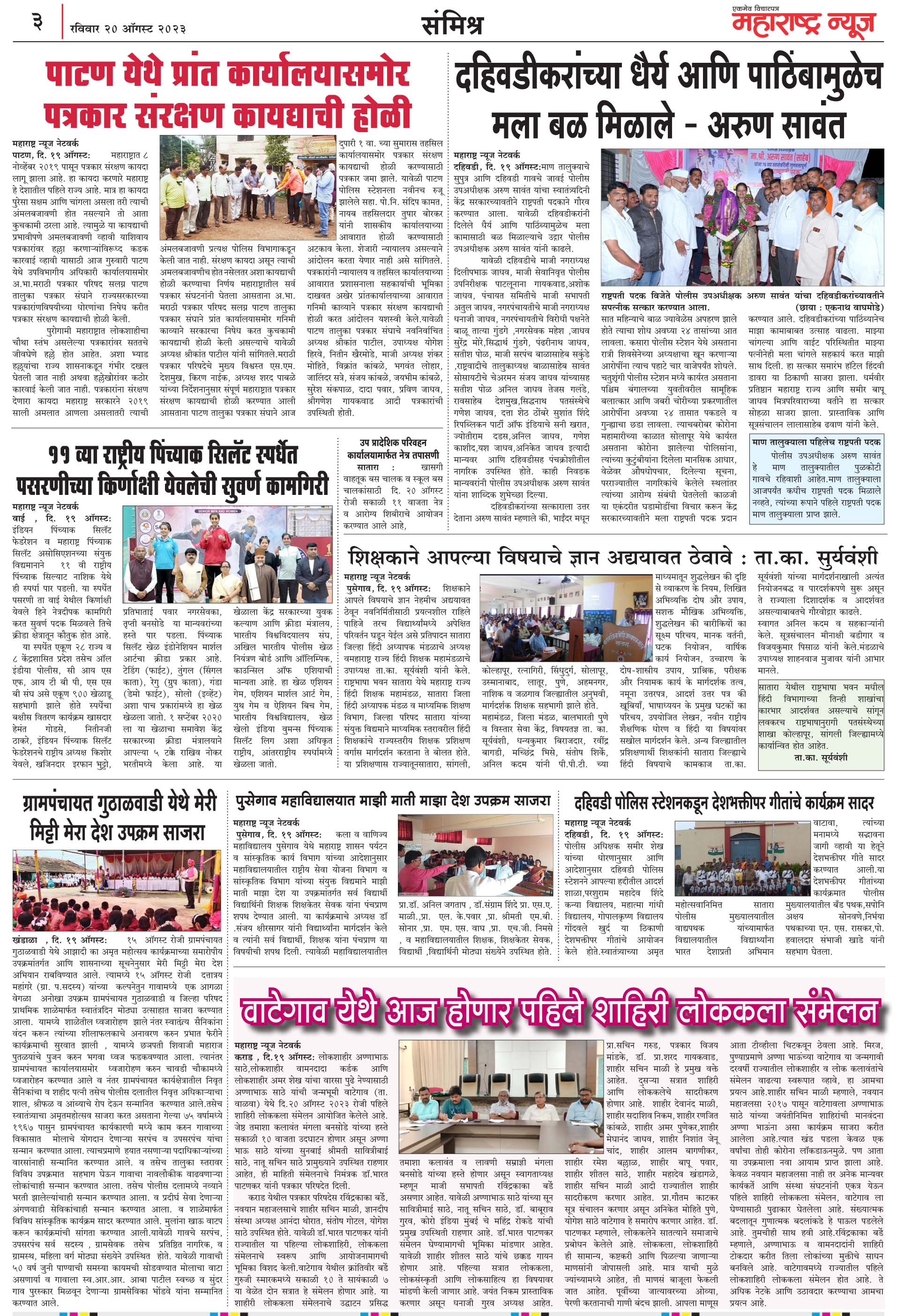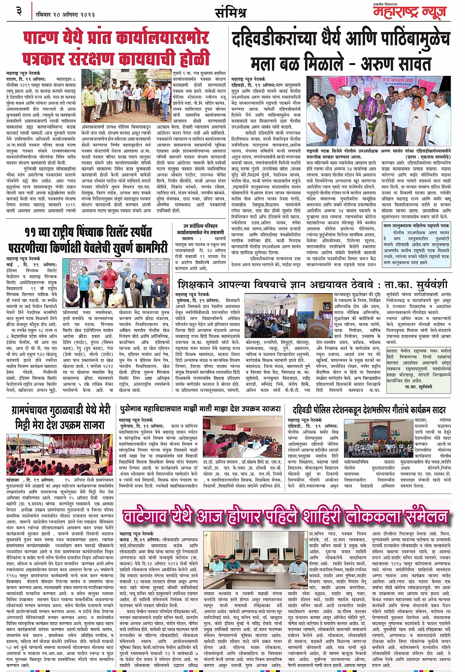 दैनिक महाराष्ट्र न्यूज-20/08/2023 Page: 3 August 20, 2023 << First << 3 >> Last >> Page 1Page 2Page 3Page 4 × दैनिक महाराष्ट्र न्यूज-20/08/2023 << First << 3 >> Last >> Page 1_20-08-2023Page 2_20-08-2023Page 3_20-08-2023Page 4_20-08-2023