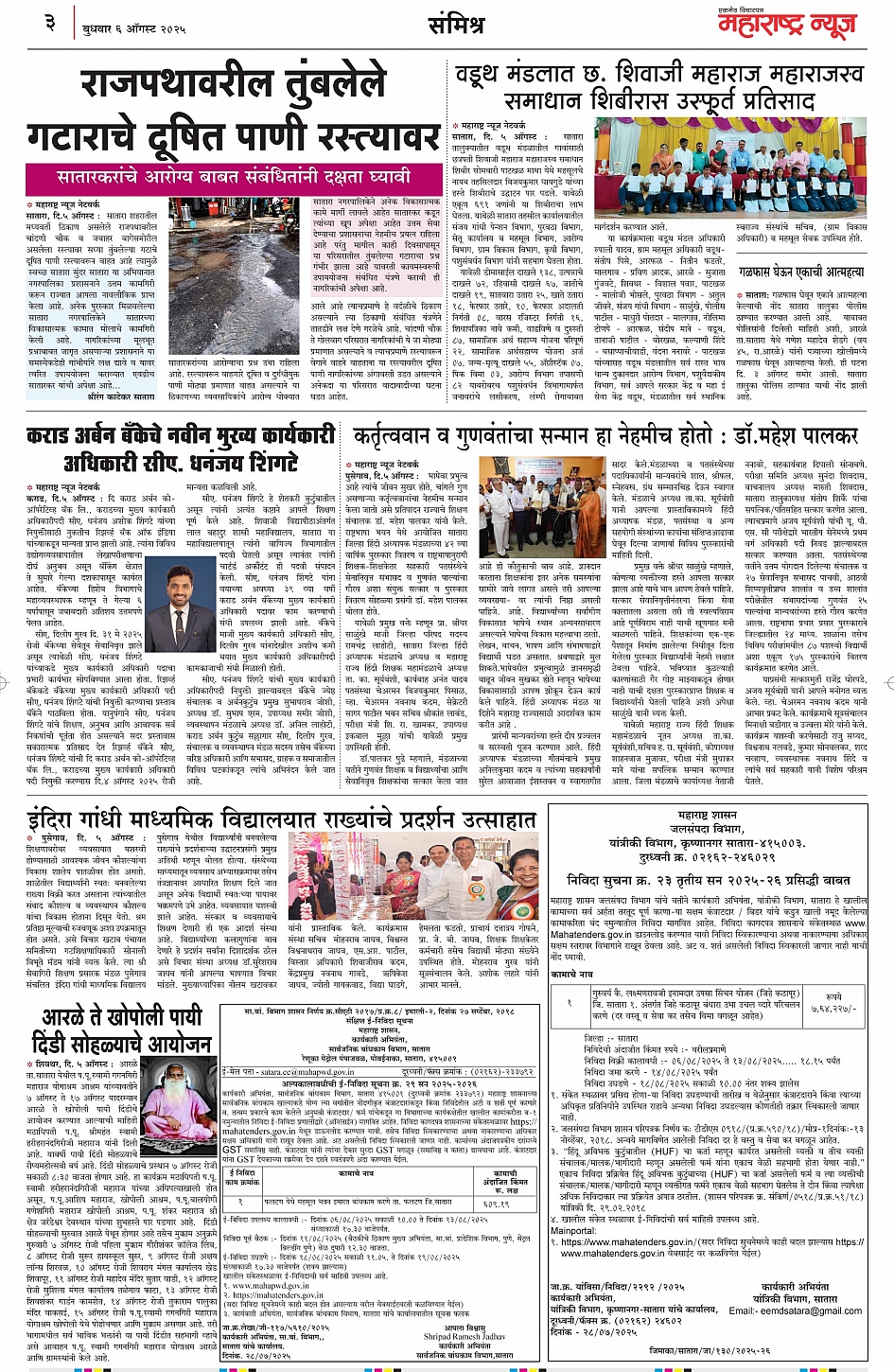 दैनिक महाराष्ट्र न्यूज-06/08/2025 Page: 3 August 06, 2025 << First << 3 >> Last >> Page 1Page 2Page 3Page 4 × दैनिक महाराष्ट्र न्यूज-06/08/2025 << First << 3 >> Last >> page 1page 2page 3page 4