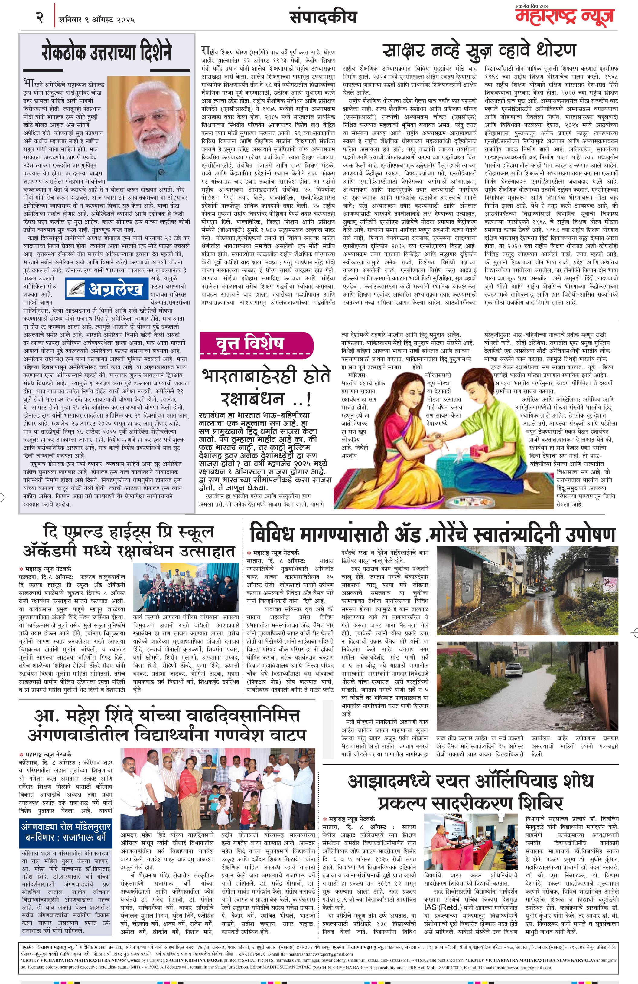 दैनिक महाराष्ट्र न्यूज-09/08/2025 Page: 2 August 09, 2025 << First << 2 >> Last >> Page 1Page 2Page 3Page 4 × दैनिक महाराष्ट्र न्यूज-09/08/2025 << First << 2 >> Last >> page 1 newpage 2page 3page 4