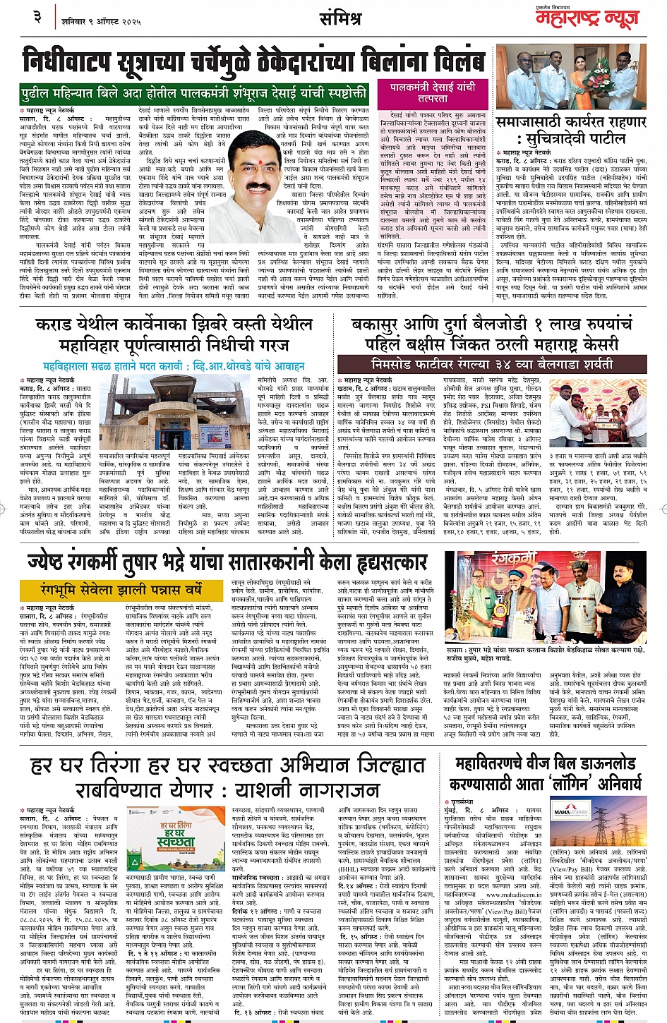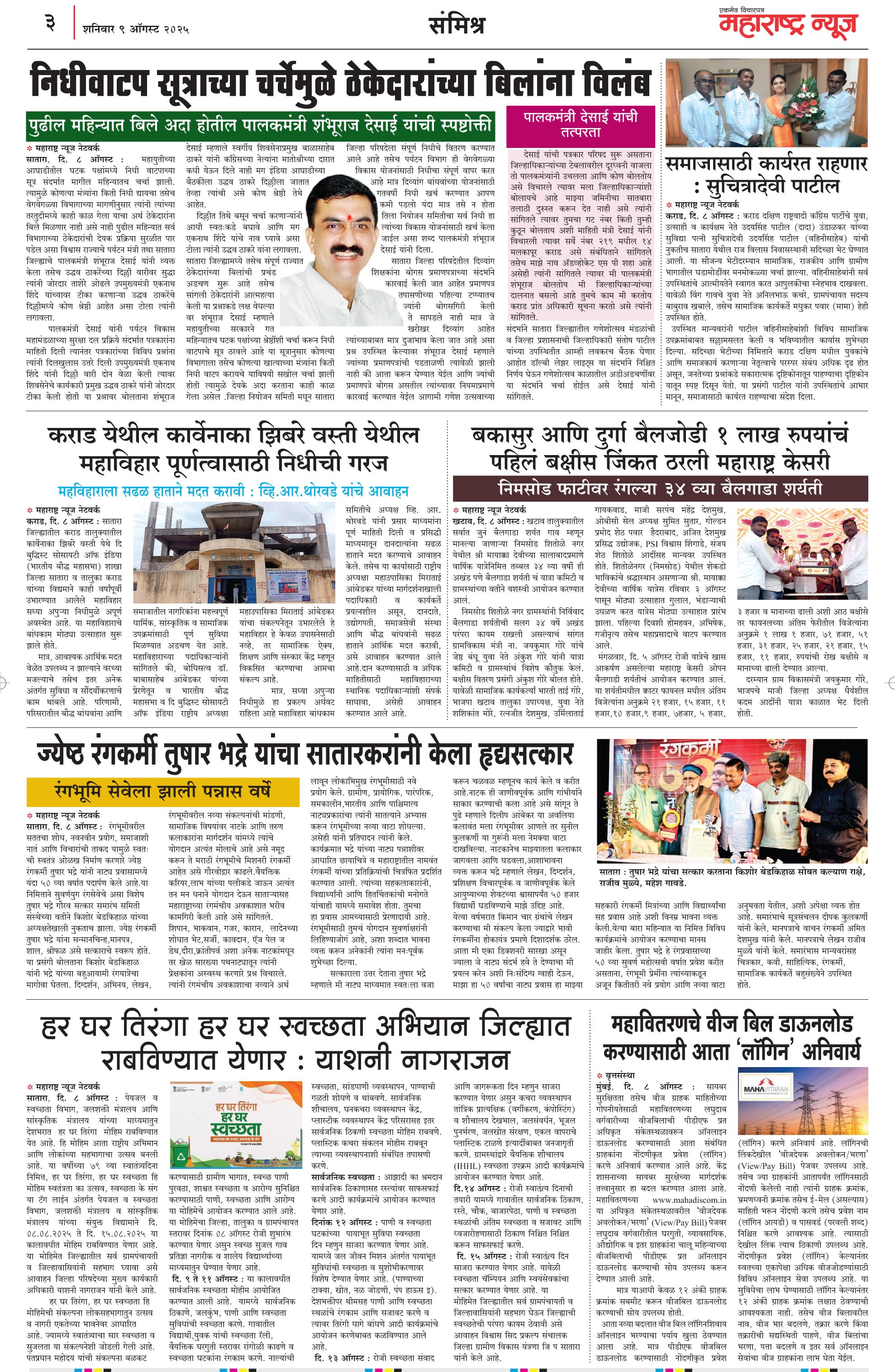 दैनिक महाराष्ट्र न्यूज-09/08/2025 Page: 3 August 09, 2025 << First << 3 >> Last >> Page 1Page 2Page 3Page 4 × दैनिक महाराष्ट्र न्यूज-09/08/2025 << First << 3 >> Last >> page 1 newpage 2page 3page 4