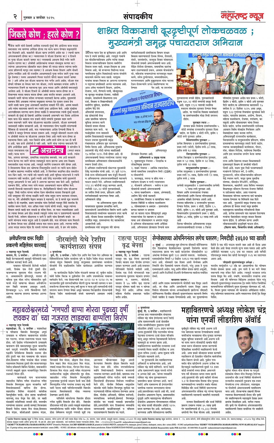 दैनिक महाराष्ट्र न्यूज-4/09/2025 Page: 2 September 04, 2025 << First << 2 >> Last >> Page 1Page 2Page 3Page 4 × दैनिक महाराष्ट्र न्यूज-4/09/2025 << First << 2 >> Last >> page 1page 2page 3page 4