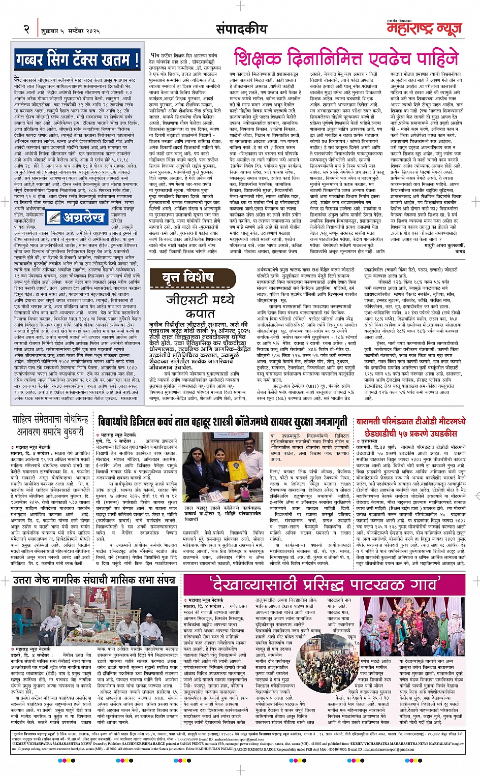 दैनिक महाराष्ट्र न्यूज-5/09/2025 Page: 2 September 05, 2025 << First << 2 >> Last >> Page 1Page 2Page 3Page 4 × दैनिक महाराष्ट्र न्यूज-5/09/2025 << First << 2 >> Last >> page 1page 2page 3page 4