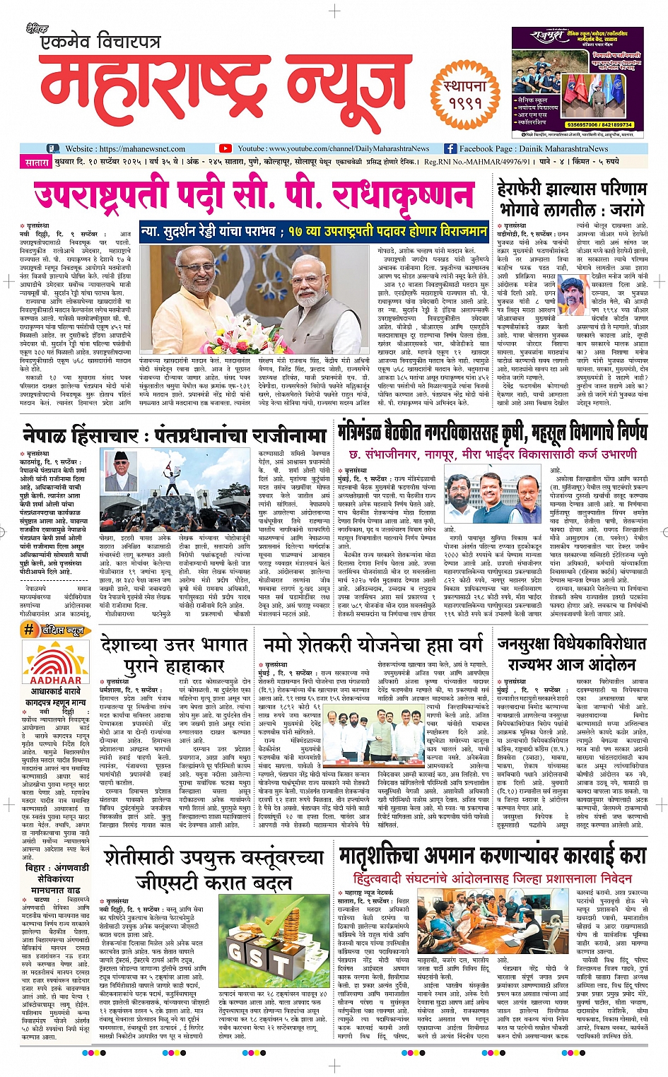 दैनिक महाराष्ट्र न्यूज-10/09/2025 September 10, 2025 << First << 1 >> Last >> Page 1Page 2Page 3Page 4 × दैनिक महाराष्ट्र न्यूज-10/09/2025 << First << 1 >> Last >> page 1page 2page 3page 4