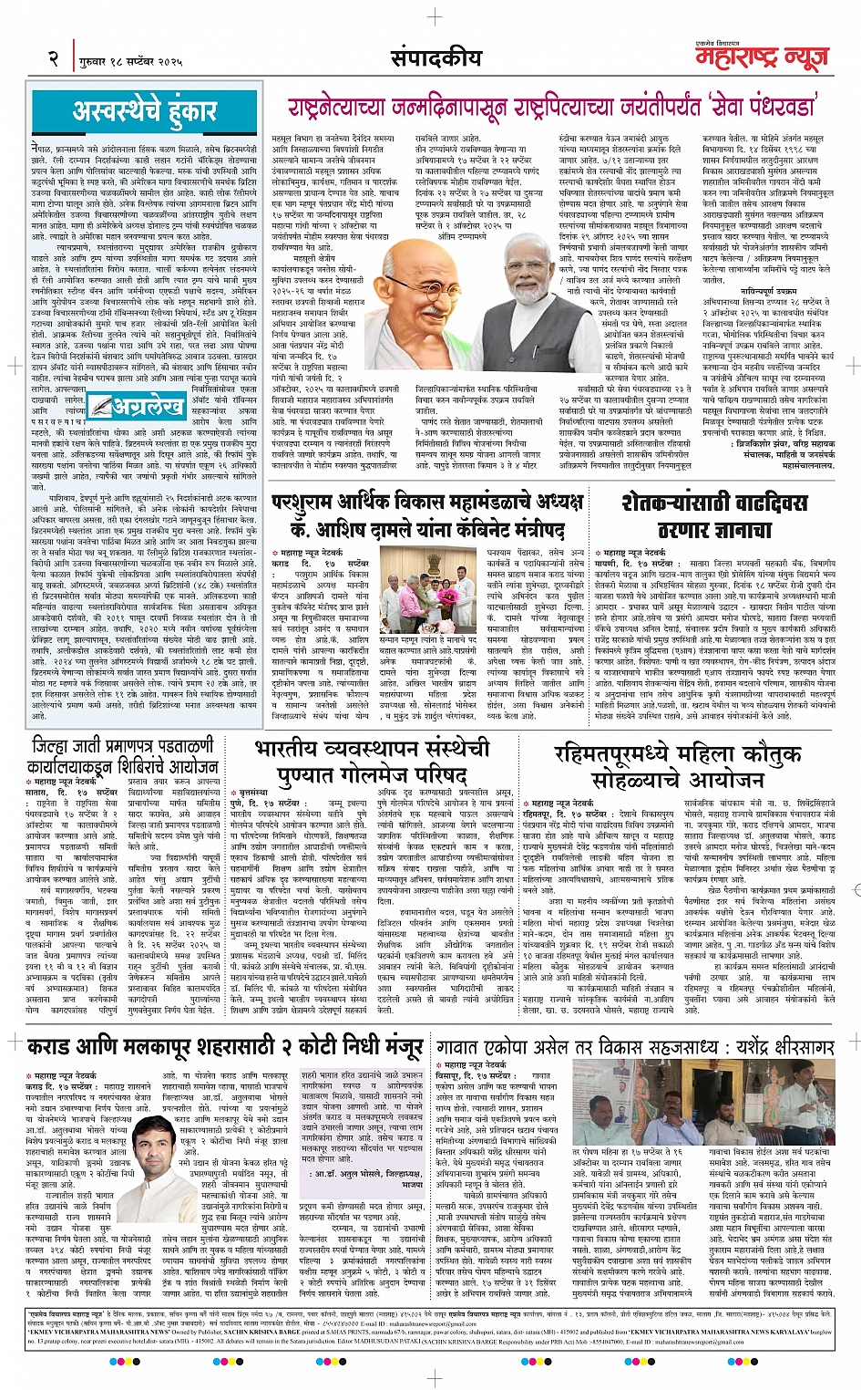 दैनिक महाराष्ट्र न्यूज-18/09/2025 Page: 2 September 18, 2025 << First << 2 >> Last >> Page 1Page 2Page 3Page 4 × दैनिक महाराष्ट्र न्यूज-18/09/2025 << First << 2 >> Last >> page 1page 2page 3page 4