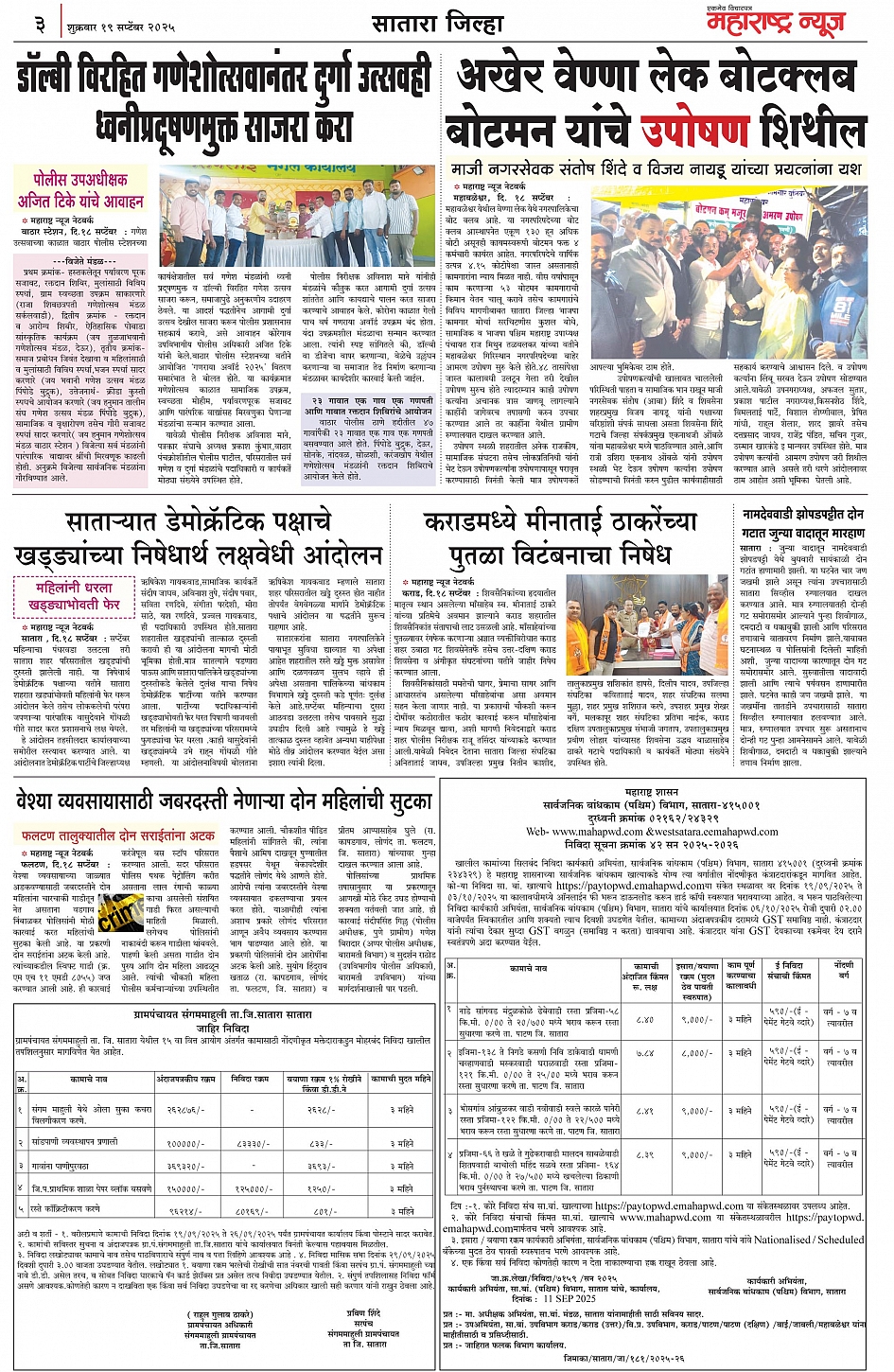 दैनिक महाराष्ट्र न्यूज-19/09/2025 Page: 3 September 19, 2025 << First << 3 >> Last >> Page 1Page 2Page 3Page 4 × दैनिक महाराष्ट्र न्यूज-19/09/2025 << First << 3 >> Last >> page 1page 2page 3page 4