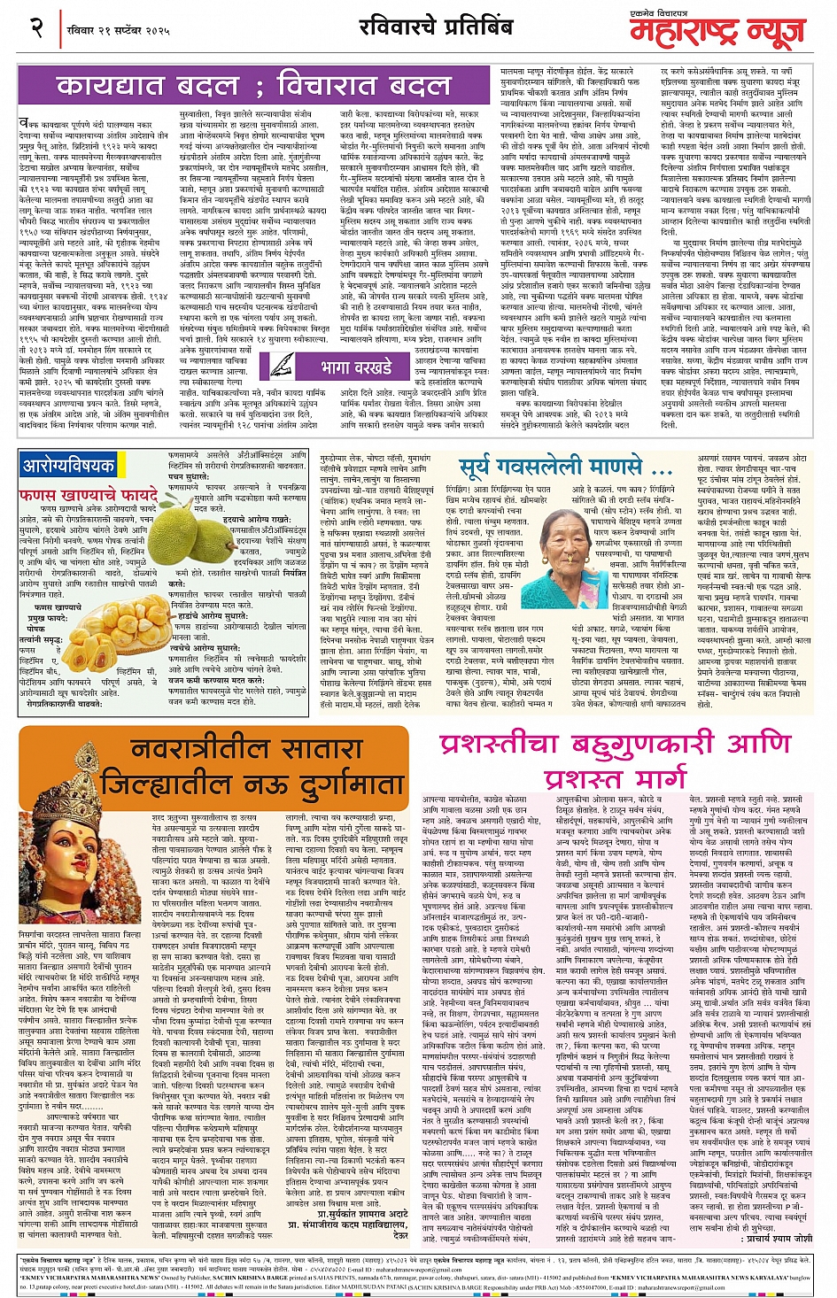 दैनिक महाराष्ट्र न्यूज-21/09/2025 Page: 2 September 21, 2025 << First << 2 >> Last >> Page 1Page 2Page 3Page 4 × दैनिक महाराष्ट्र न्यूज-21/09/2025 << First << 2 >> Last >> page 1page 2page 3page 4