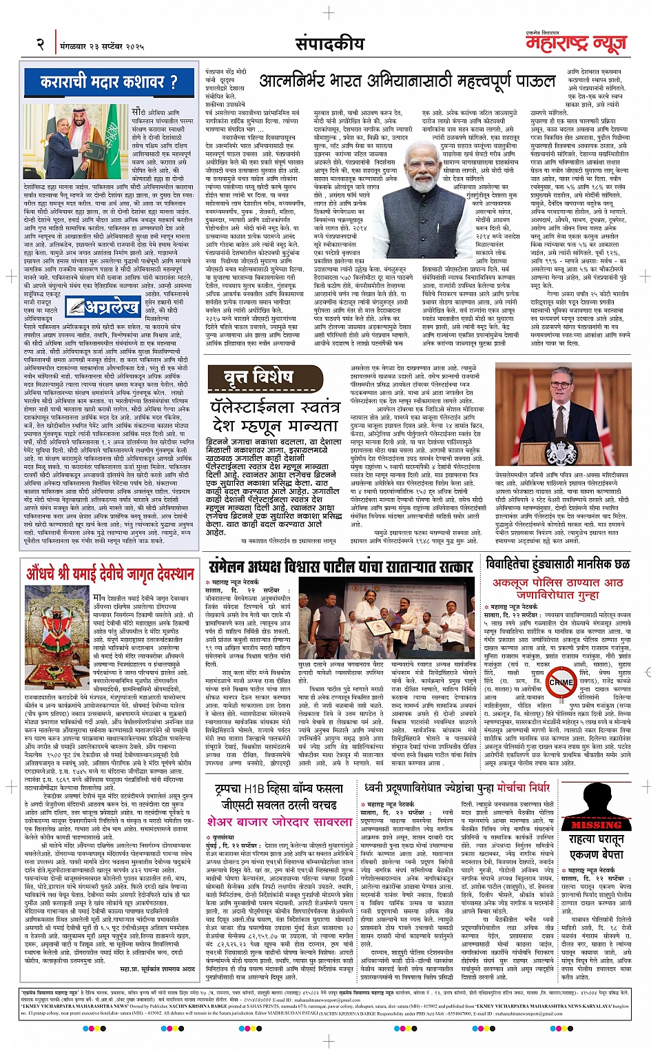 दैनिक महाराष्ट्र न्यूज-23/09/2025 Page: 2 September 23, 2025 << First << 2 >> Last >> Page 1Page 2Page 3Page 4 × दैनिक महाराष्ट्र न्यूज-23/09/2025 << First << 2 >> Last >> page 1page 2page 3page 4