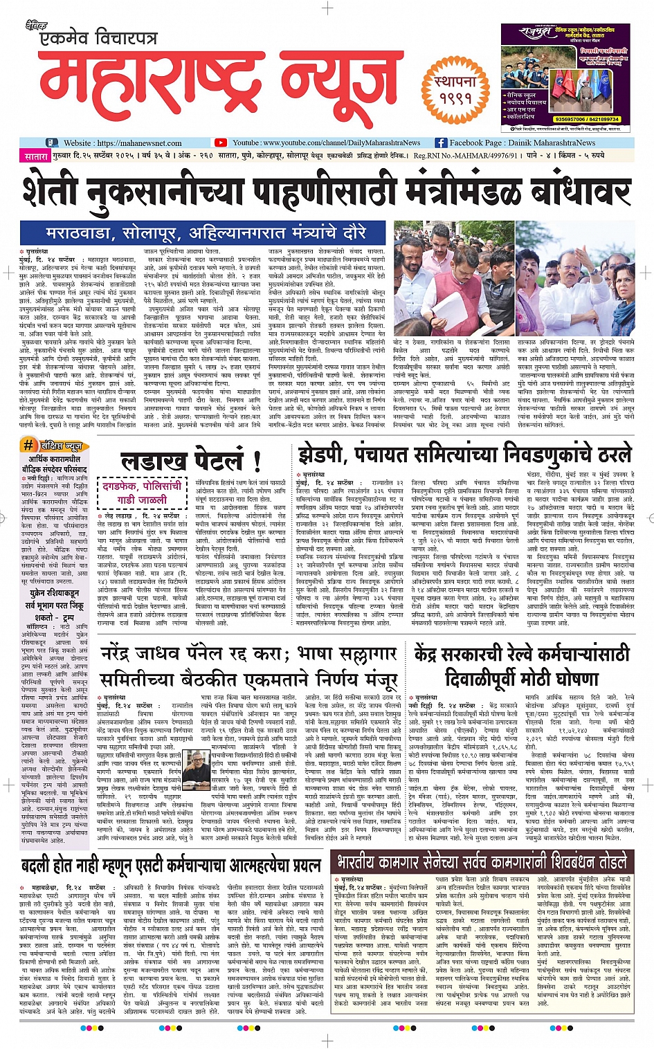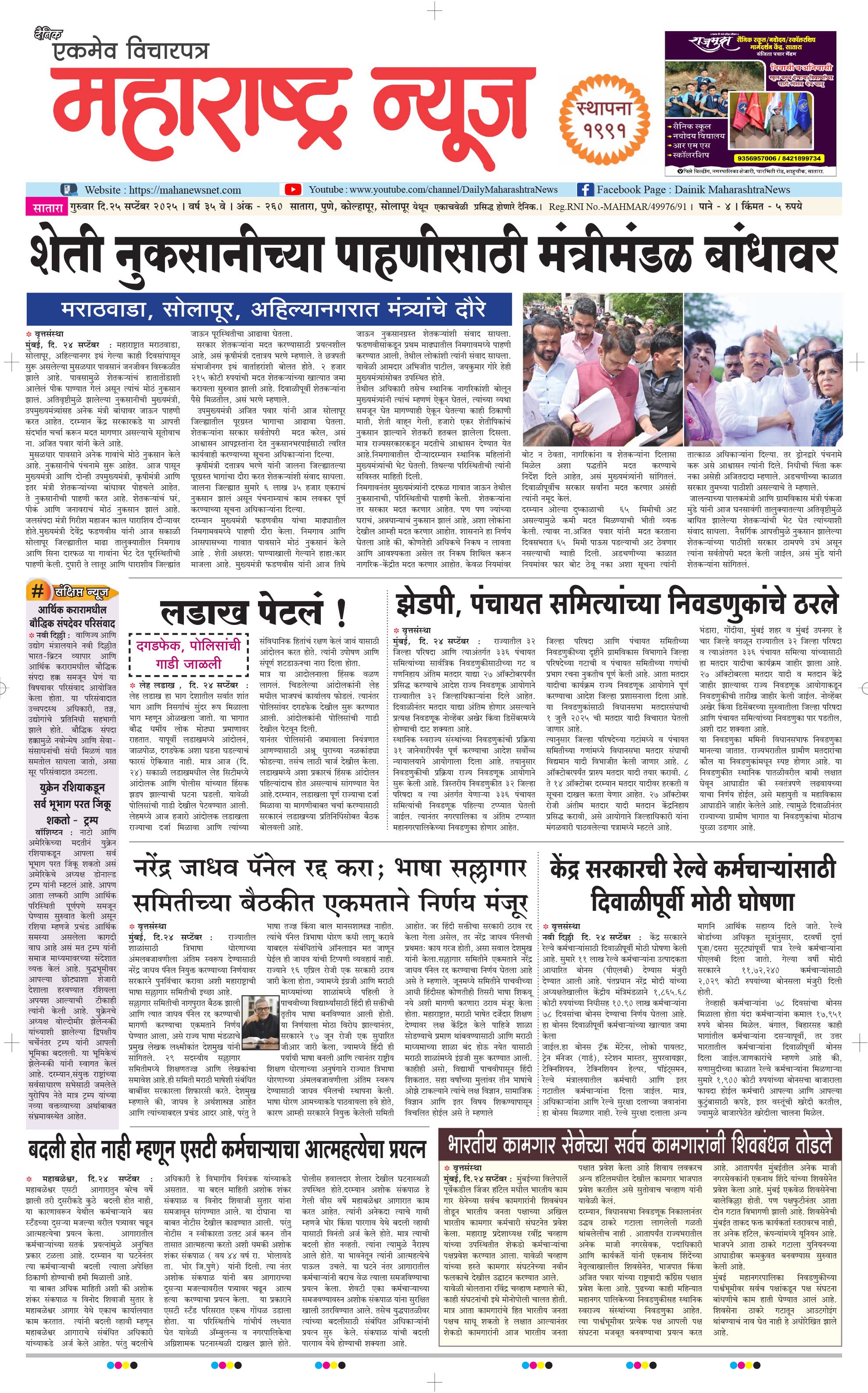 दैनिक महाराष्ट्र न्यूज-25/09/2025