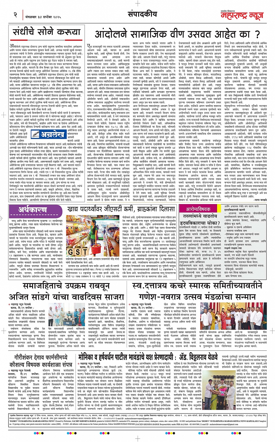 दैनिक महाराष्ट्र न्यूज-30/09/2025 Page: 2 September 30, 2025 << First << 2 >> Last >> Page 1Page 2Page 3Page 4 × दैनिक महाराष्ट्र न्यूज-30/09/2025 << First << 2 >> Last >> page 1page 2page 3page 4